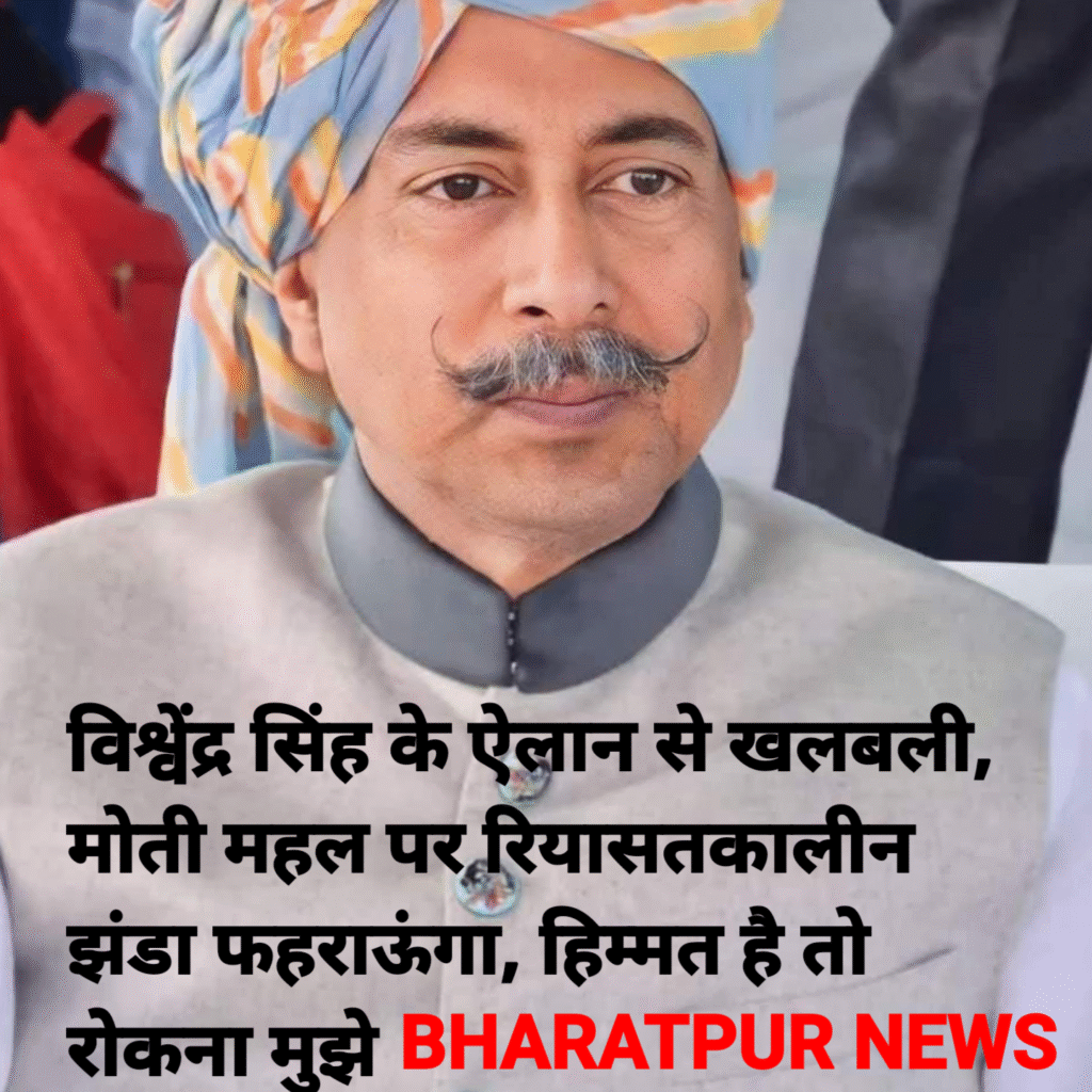 भरतपुर के पूर्व राजपरिवार के सदस्यों के बीच चल रहा विवाद एक बार फिर सामने आया है। पूर्व मंत्री विश्वेंद्र सिंह के सोशल मीडिया पोस्ट के बाद रियासतकालीन झंडे को लेकर स्थिति फिर तनावपूर्ण हो गई है।