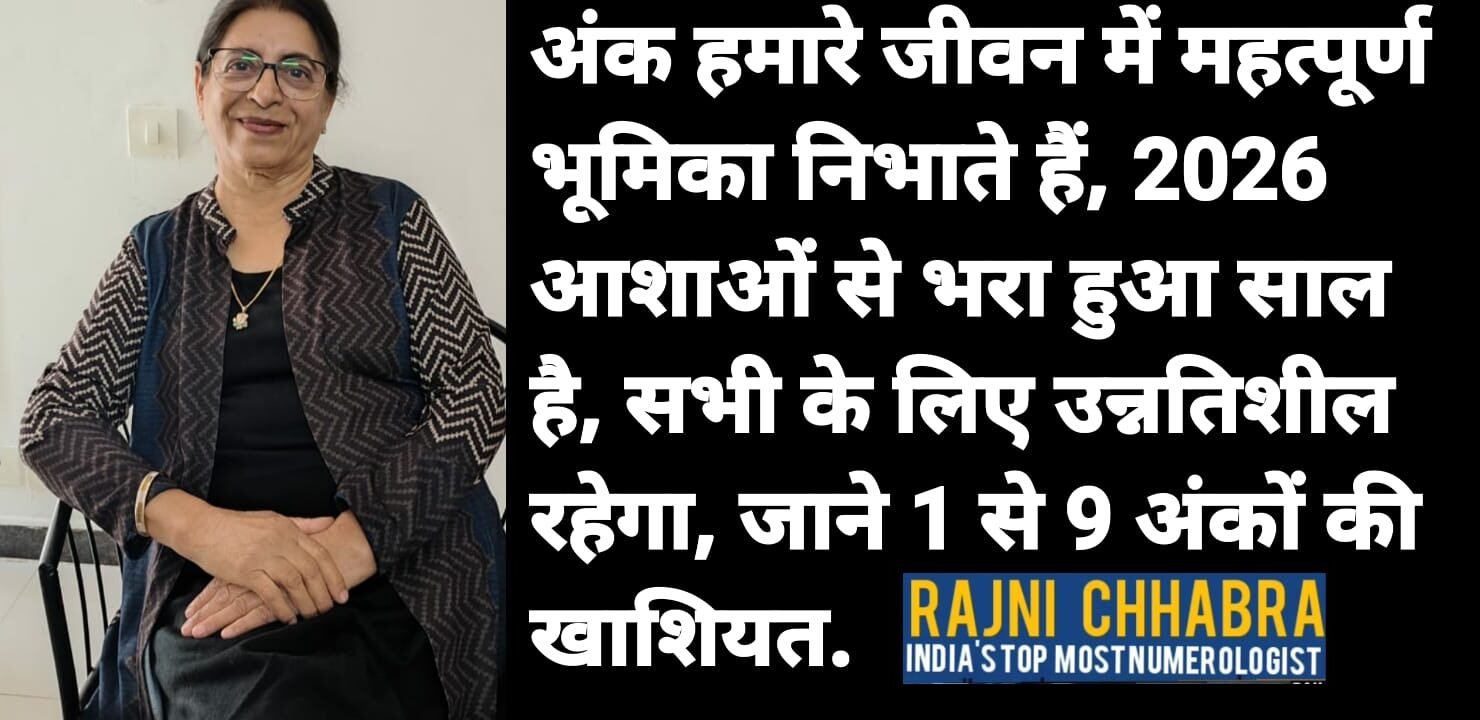 अंक हमारे जीवन में महत्पूर्ण भूमिका निभाते हैं, 2026 आशाओं से भरा हुआ साल है, सभी के लिए उन्नतिशील रहेगा, जाने 1 से 9 अंकों की खाशियत.EDITOR VISHNU AGARWAL को दिए गए एक खास इंटरव्यू में प्रसिद्ध Numerologist RAJNI CHHABRA ने कहा कि साल 2026 सभी के लिए उन्नतिशील रहेगा.. RAJNI CHHABRA ने कहा कि अंक ज्योतिष की जीवन में खास भूमिका होती है और number हमारे जीवन को प्रभावित करते हैं, 1 से 9 Numbers तक के अंक ज्योतिषीय दृष्टिकोण से हमारे जीवन में सुख दुख के कारण बनते हैं..RAJNI CHHABRA ने सभी 9 अंक की खाशियत बताते हुए कहा कि रिश्ते हो या career या फिर कोई भी Problems नंबर बहुत महत्पूर्ण होते है..#rajnichhabra#numbrology #dailyindiatimes #vishnuagrawal #numbrologist