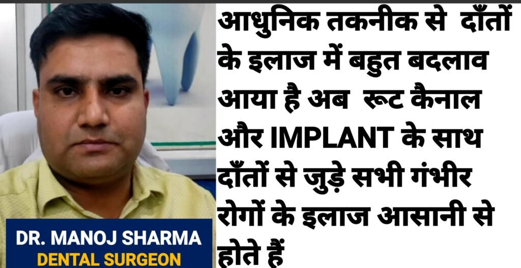 JOURNALIST VISHNU AGARWAL को दिये एक खास इंटरव्यू में JAIPUR के हरमाड़ा में स्थित MANOJ DENTAL CLINIC के DENTAL SURGEON DR. MANOJ KUMAR SHARMA ने कहा कि दाँतों के किसी भी रोग को लेकर लोगों को डर या भ्रम में नहीं रहना चाहिए.. अब आधुनिक तकनीकों के आने के बाद रूट कैनाल Treatment और नए दांत लगाना आसान हो चुका है.