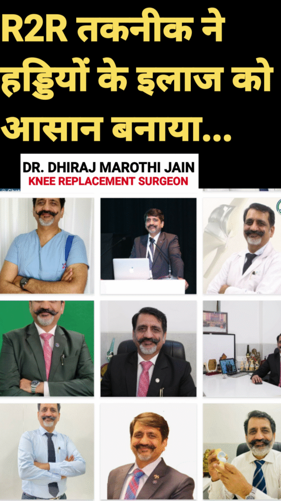 DR. Dhiraj marothi ने कहा कि उनके द्वारा लंबे अनुभव से इजाद करी गई R2R REPLACEMENT TO RESURFACING तकनीक ने ना सिर्फ घुटने के इलाज को मरीजों के लिए आसान बनाया है ब्लकि मरीज़ पहले दिन से चलने लगता हैं और दर्द मुक्त भी है