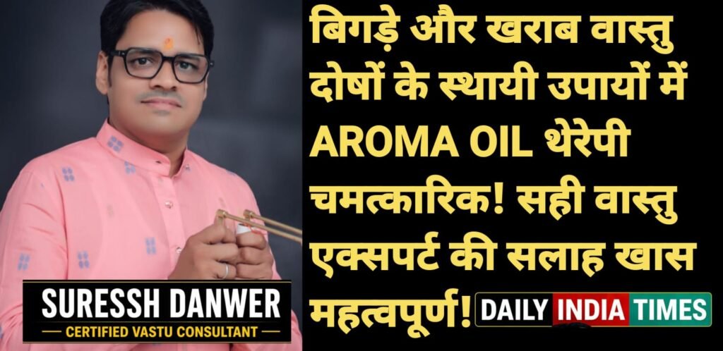 SURESSH DANWER ने उपायों की बात करते हुए कहा कि उनके द्वारा किए जाने वाले वास्तु उपायों से जीवन समृद्ध होता है.उन्होंने उनके द्वारा निर्मित AROMA OIL थेरपी से VASTU दोष दूर करने का दावा करते हुए कहा कि AROMA OIL THERAPY वास्तु दोष का चामत्कारिक साधन है, कितना भी खराब वास्तु दोष AROMA OIL थेरेपी से दूर होता है..