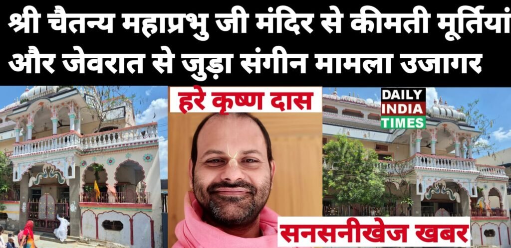 राजस्थान के अजमेर शहर से धार्मिक भावनाओं को आहत कर देने वाला एक बेहद संगीन मामला उजागर हुआ है। अजमेर के विनय नगर में स्थित श्री चैतन्य महाप्रभु जी मंदिर से बेशकीमती जेवरात और मूर्तियां तथाकथित और आपराधिक तरीके से मंदिर परिसर से हटा दी गयी हैं और आरोपित कृष्ण केशव इस संगीन में हाथ बताया जाता है।